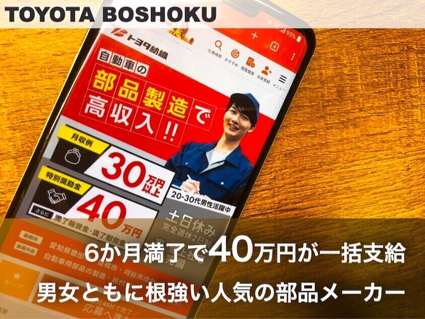 トヨタ紡織では、6ヶ月満了すると特別奨励金が40万円も支給されるため、特に半年では非常に稼ぎやすい条件になっています。